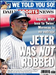 "While I know that voting for these awards is primarily based on differing opinions and statistical debates, it's also part of what makes baseball such a great sport," Jeter said. "Having said that, I'm flattered and honored to have been considered for the American League Most Valuable Player Award. I want to congratulate Justin Morneau. Winning the World Series for the Yankees continues to be my main focus. There is no individual award that can compare with a championship trophy, and I look forward to working towards that challenge again in 2007."