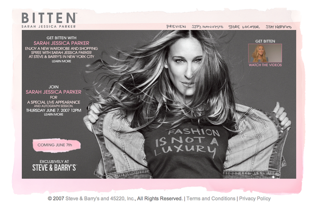 和Sarah Jessica Parker合作推出BITTEN的Steve & Barry's