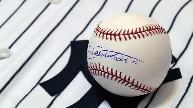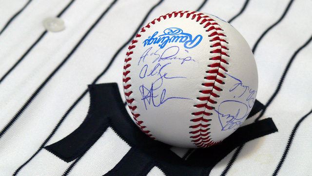 簽名由上至下分別為Alex Rodriquez和Derek Jeter
